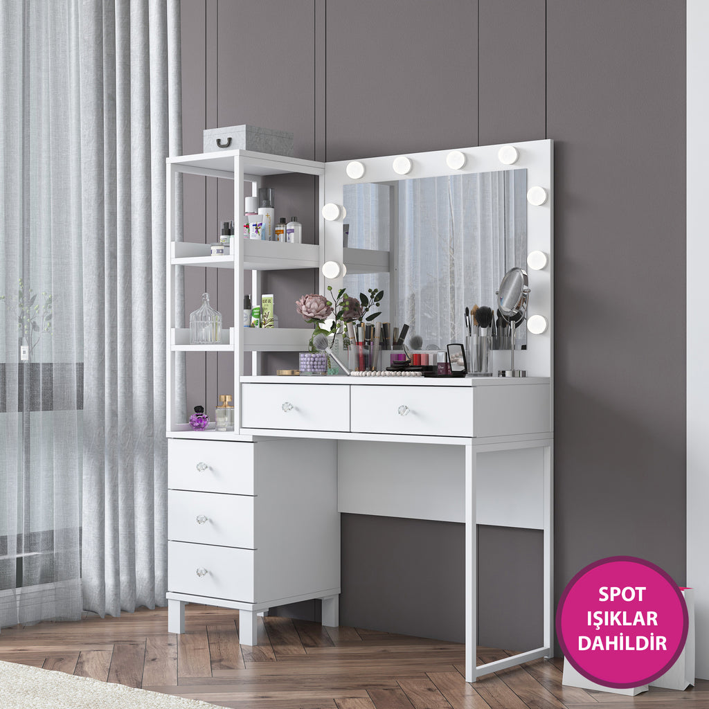 * Çekmece içindeki bölmeler takı, makyaj malzemeleri gibi eşyalarınızı kolayca düzenlemenizi sağlar. Bölmeleri konumlandırmadan da kullanabilirsiniz.