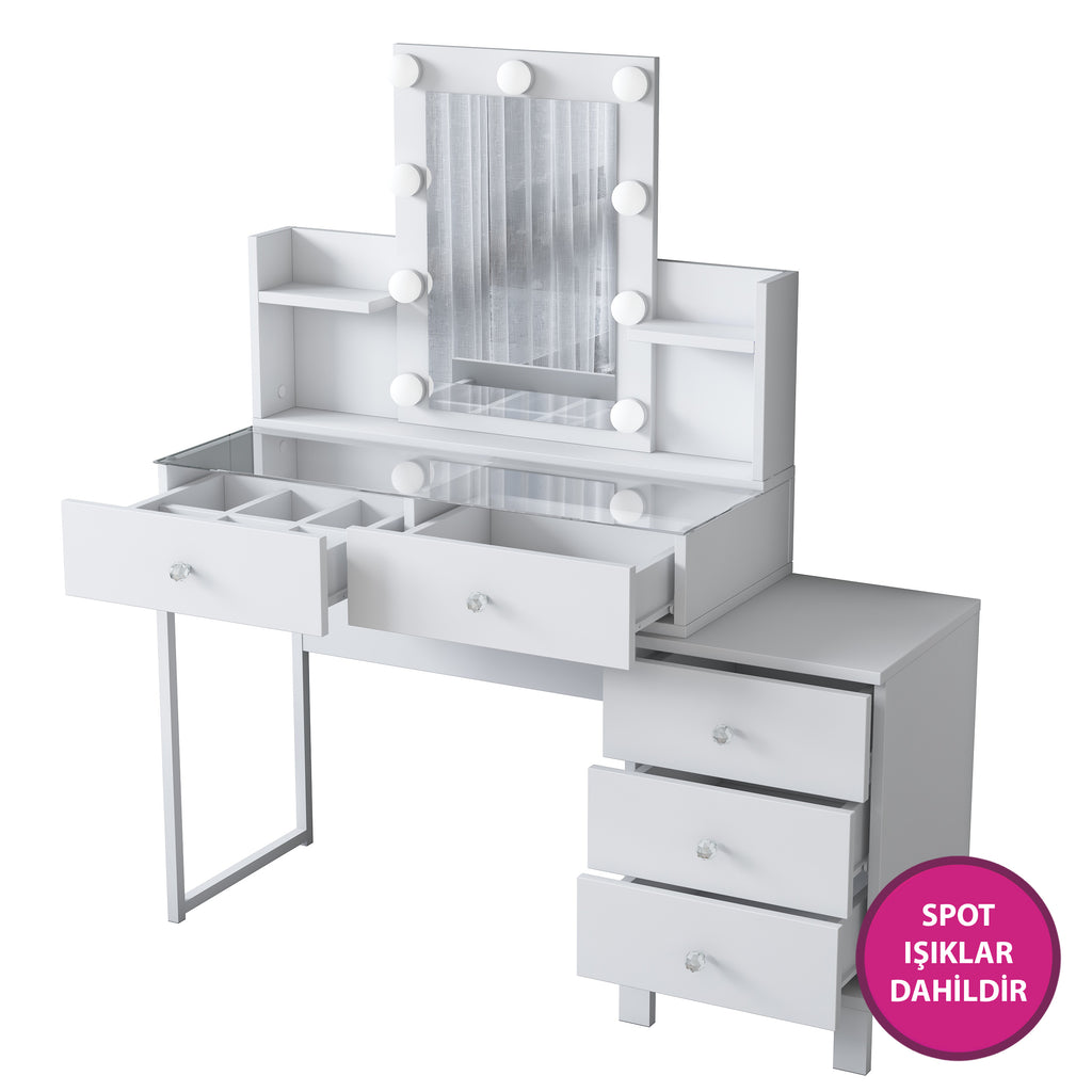 Makyaj Masası: Genişlik: 120 cm - Derinlik: 40 cm - Yükseklik: 136,8 cm