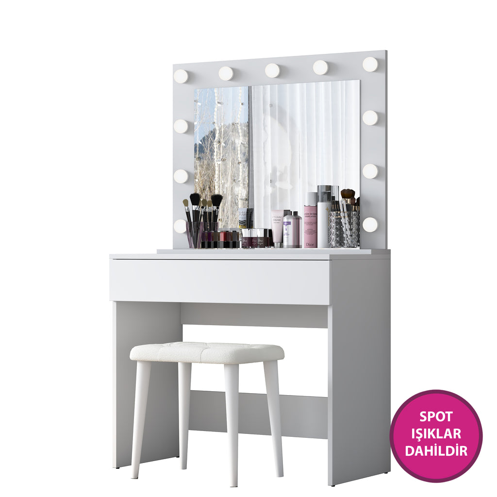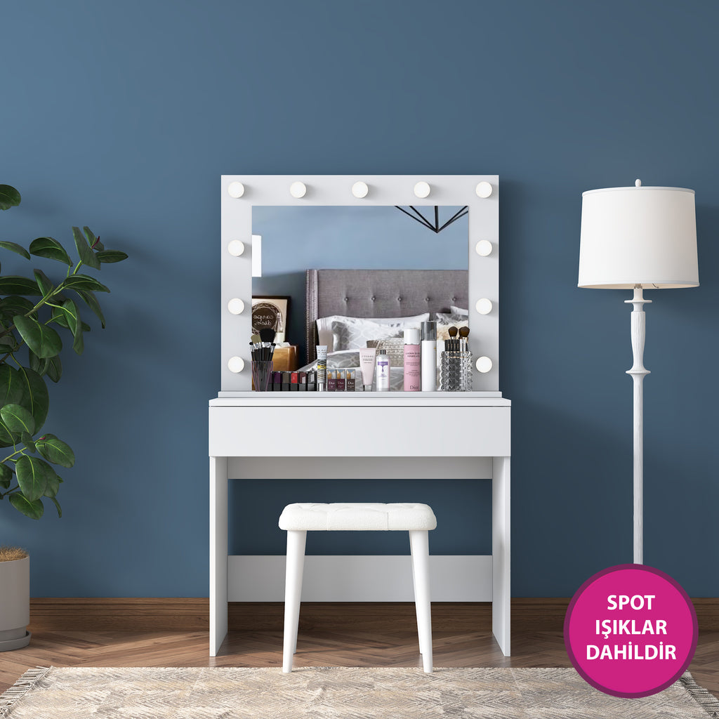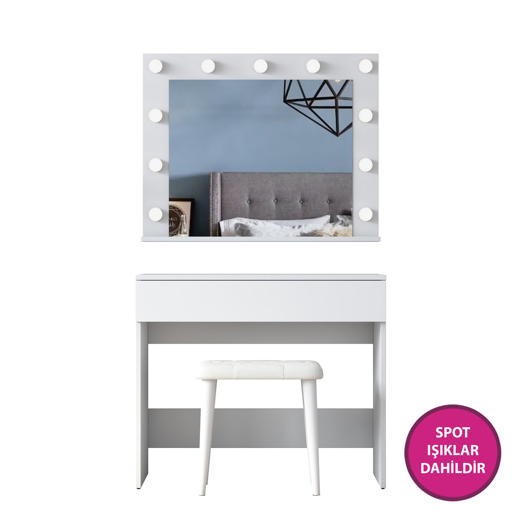 1 Adet Makyaj Masası 1 Adet Ayna 11 Adet Spot Işık 1 Adet Puf