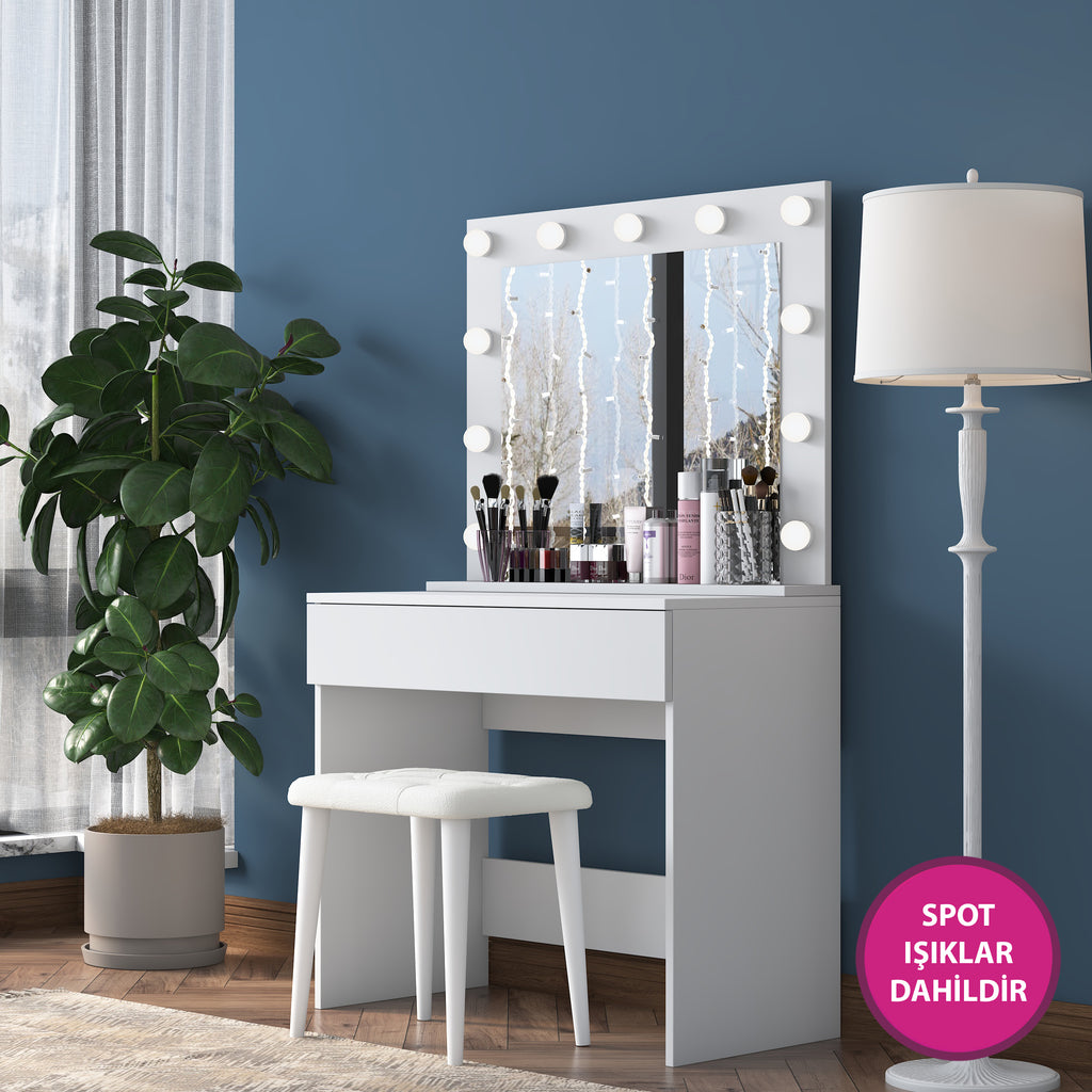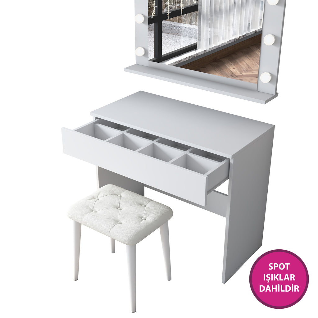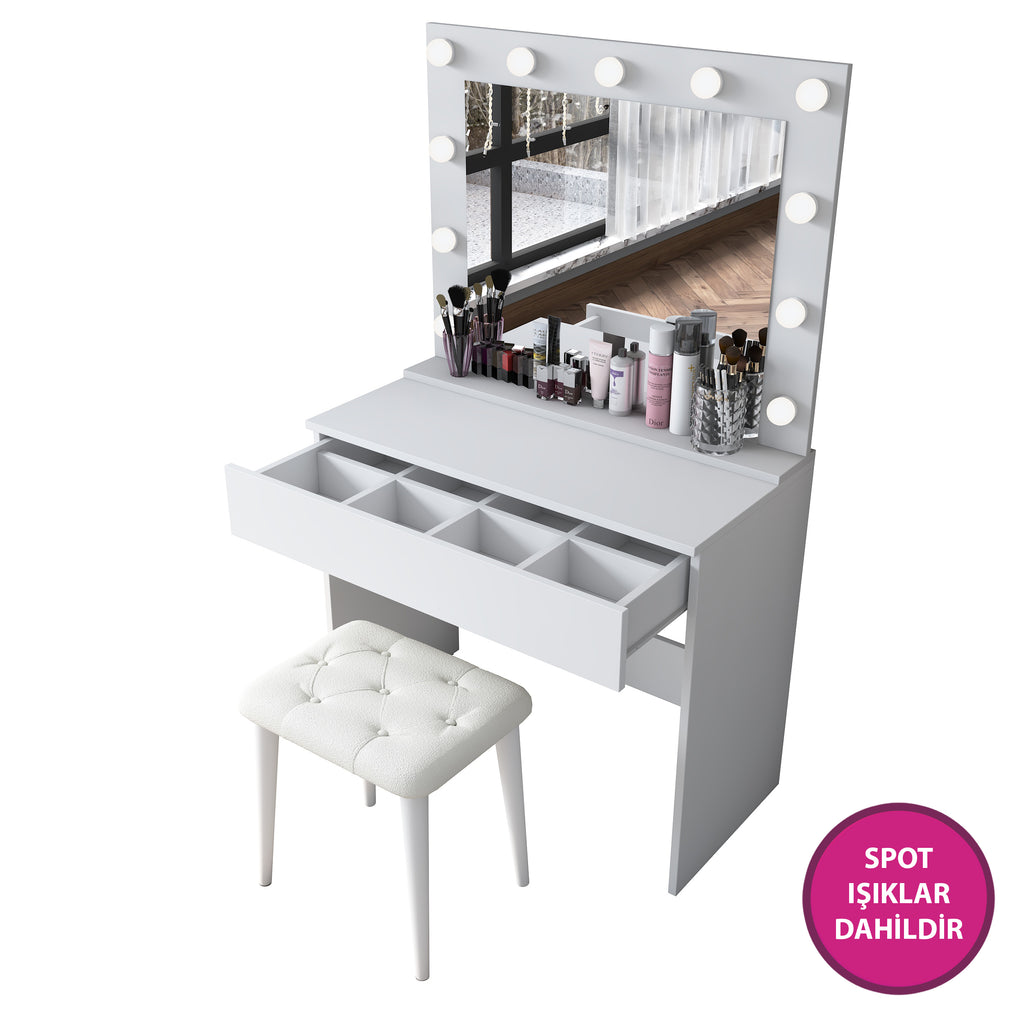 1 Adet Makyaj Masası 1 Adet Ayna 11 Adet Spot Işık 1 Adet Puf