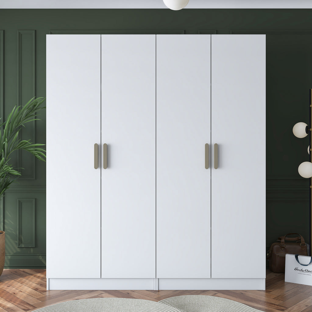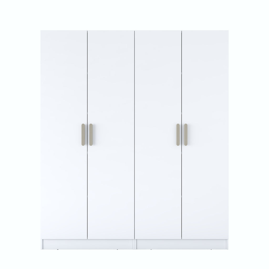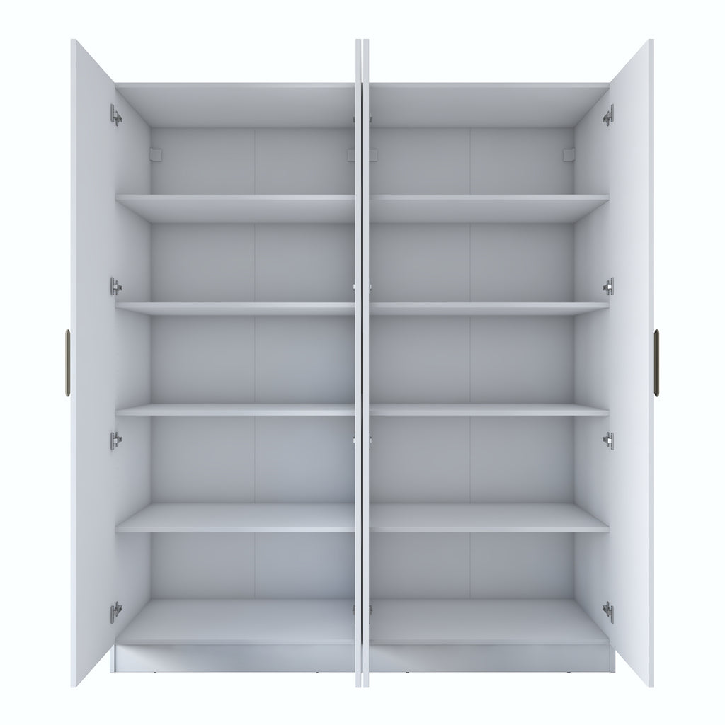 Rani BA165 Geniş Gardırop Elbise Dolabı 4 Kapaklı 8 Raflı 10 Bölmeli Modüler Dolap Beyaz
