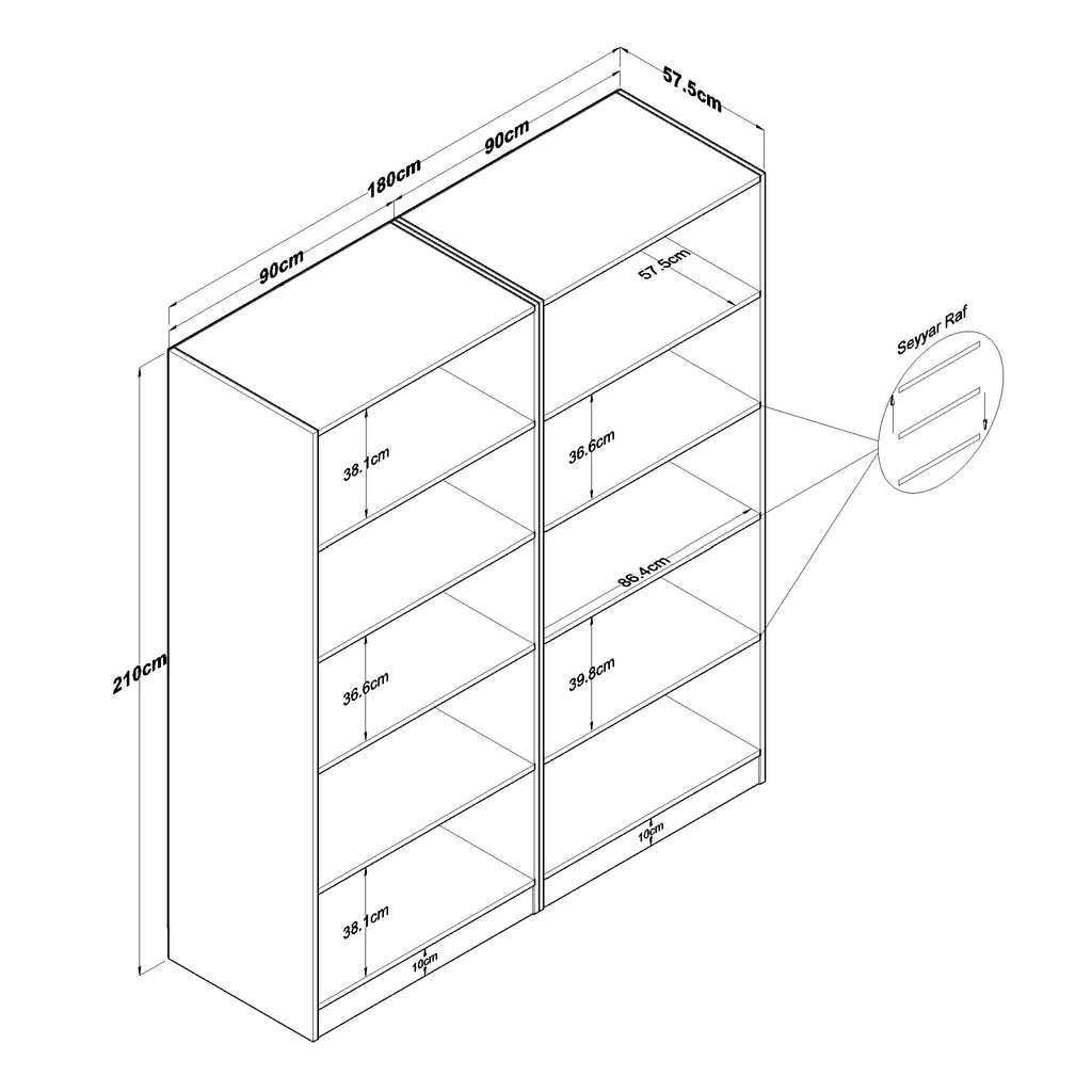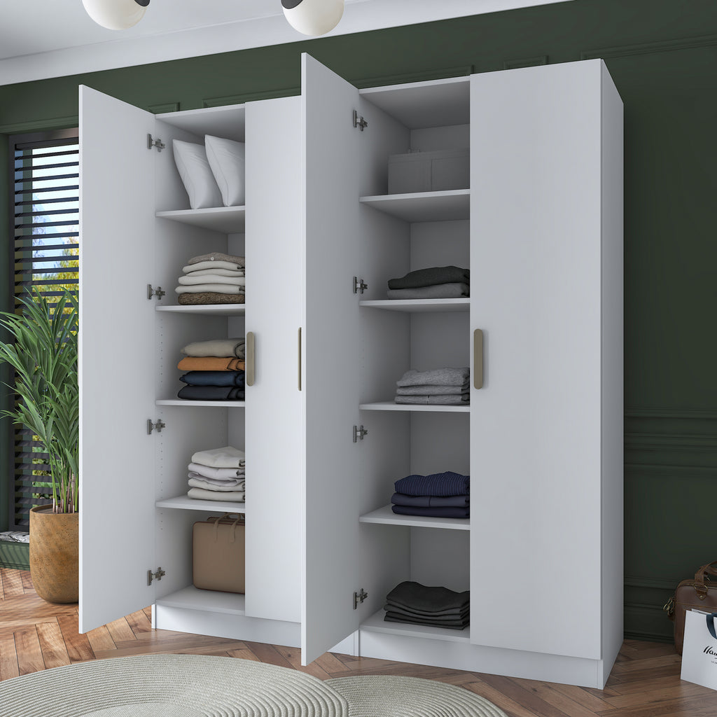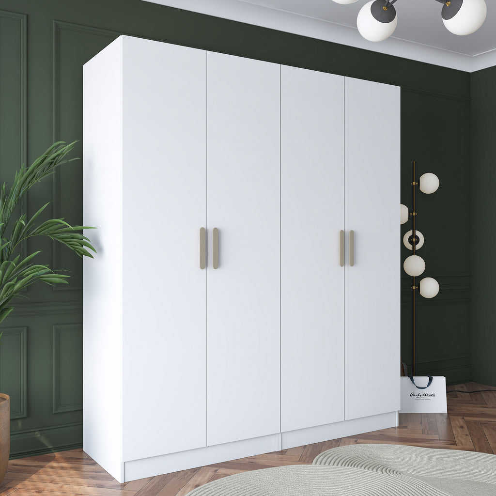 Rani BA165 Geniş Gardırop Elbise Dolabı 4 Kapaklı 8 Raflı 10 Bölmeli Modüler Dolap Beyaz