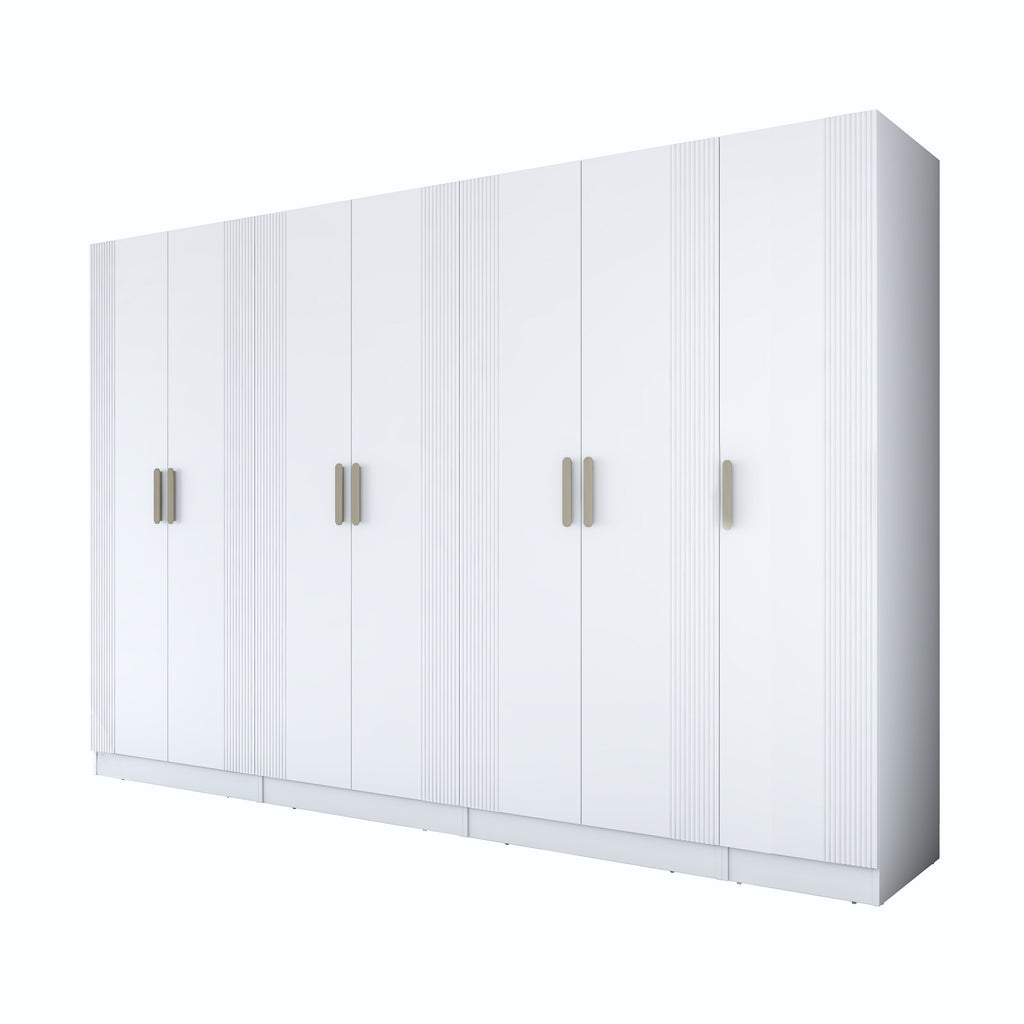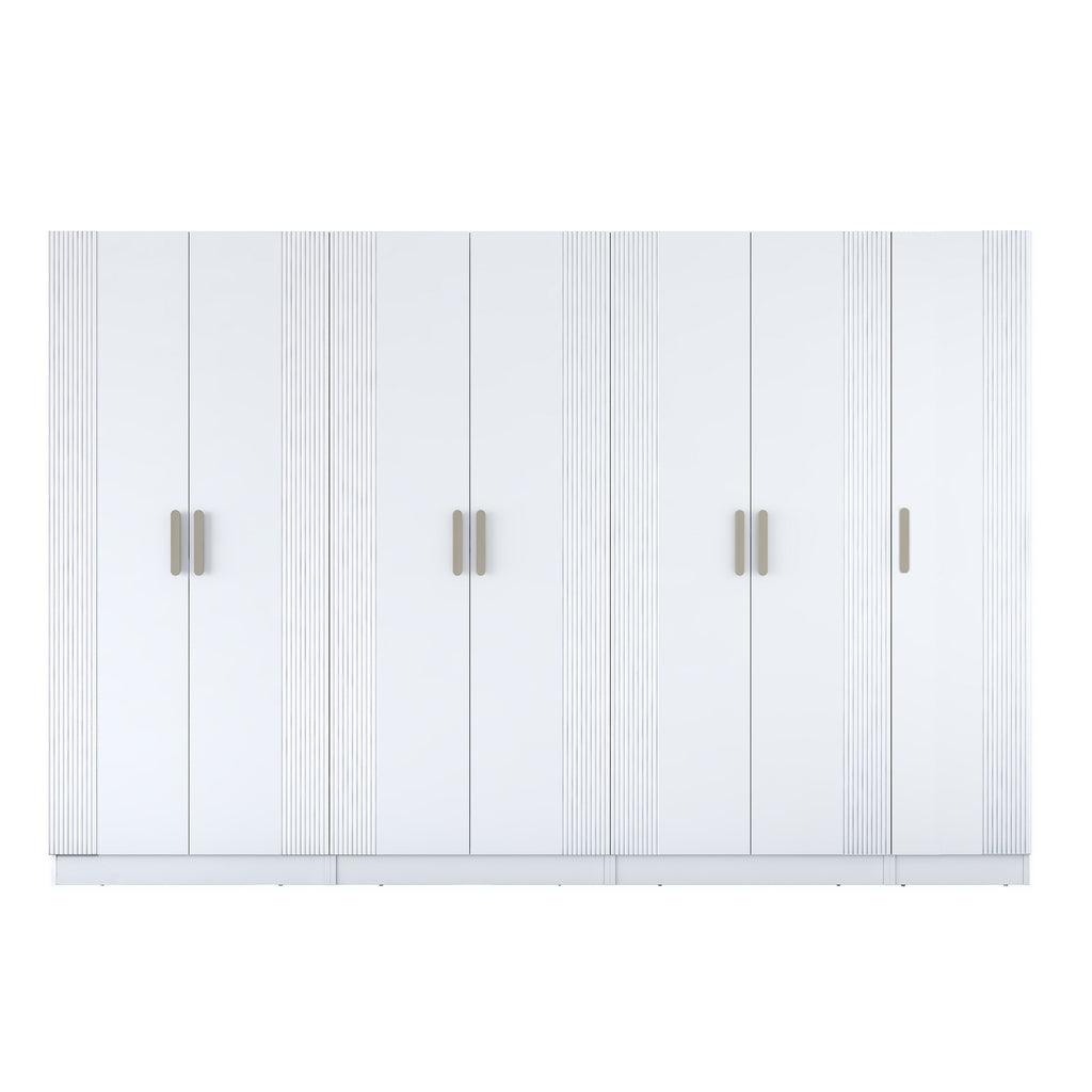 * 7 kapaklı beyaz gardırop, geniş iç hacmi, çok katlı raflarıyla eşyalarınızı pratik bir şekilde düzenlemenizi sağlar.