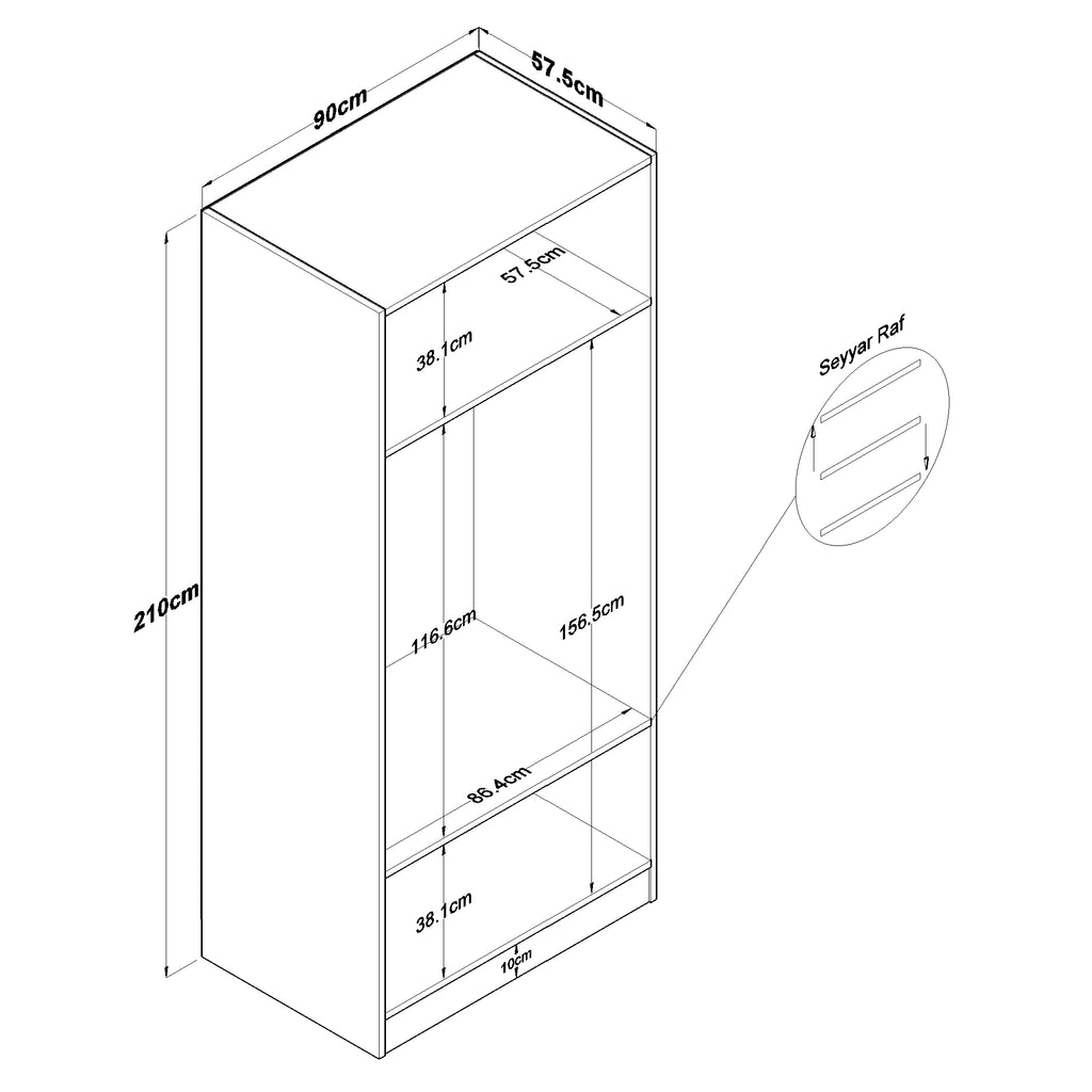 Genişlik: 90 cm - Derinlik: 57,5 cm - Yükseklik: 210 cm
