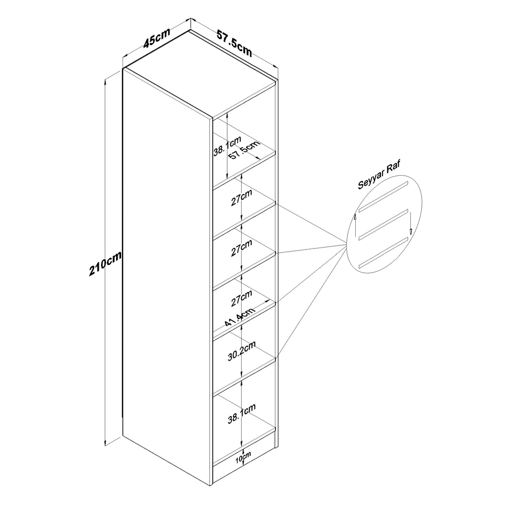 Genişlik: 45 cm - Derinlik: 57,5 cm - Yükseklik: 210 cm