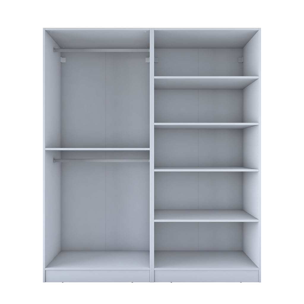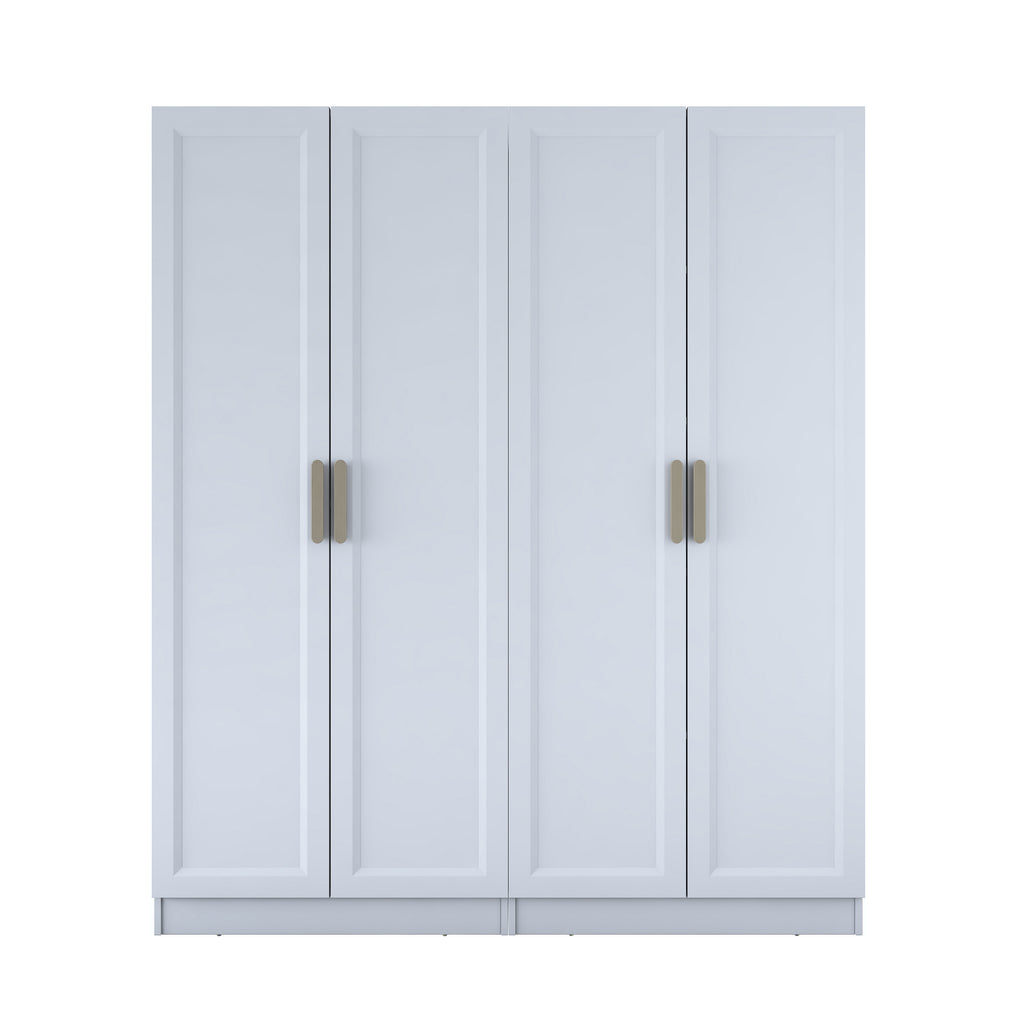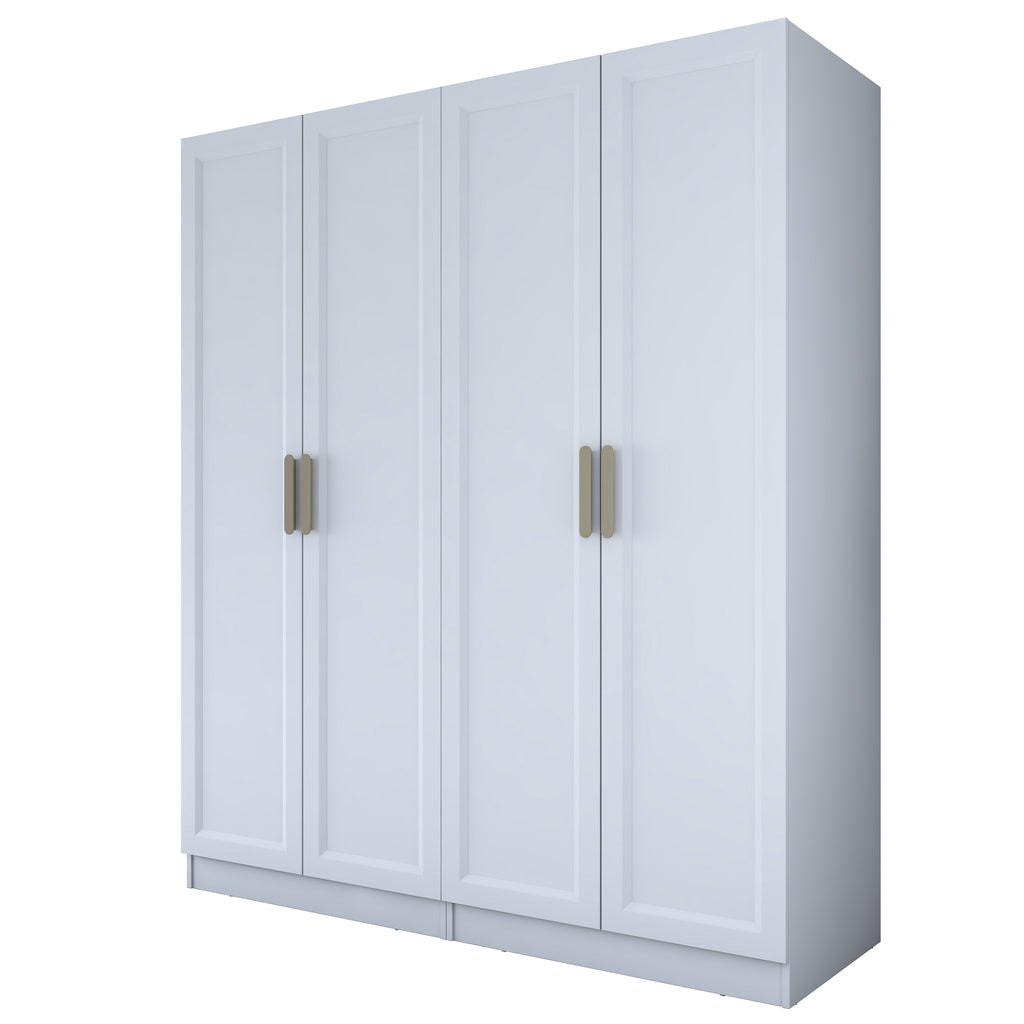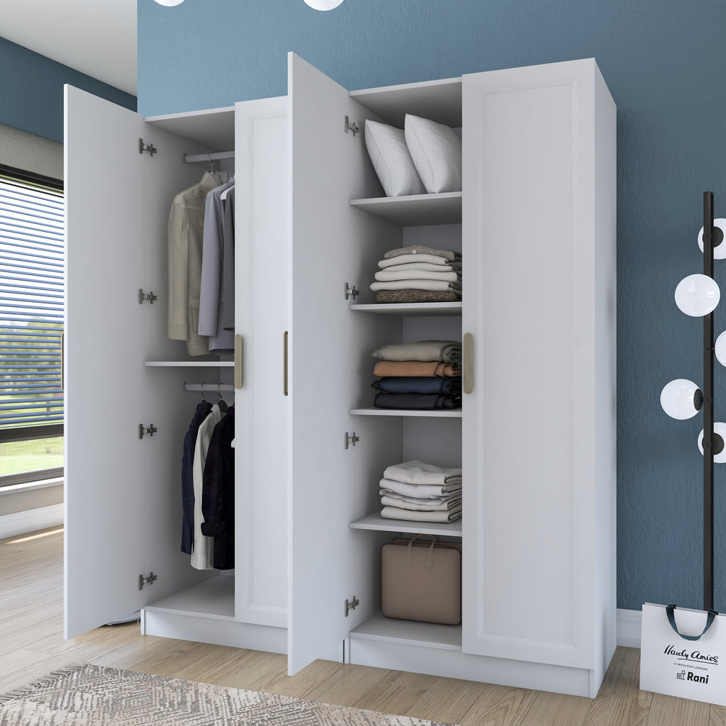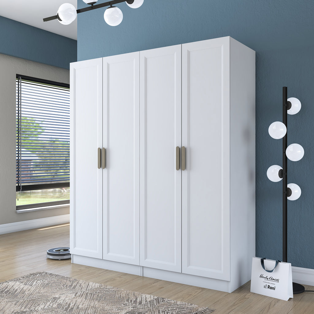 * 4 kapaklı beyaz gardırop, geniş iç hacmi, çok katlı raflarıyla eşyalarınızı pratik bir şekilde düzenlemenizi sağlar; zarif tasarımıyla evinize şıklık katar.