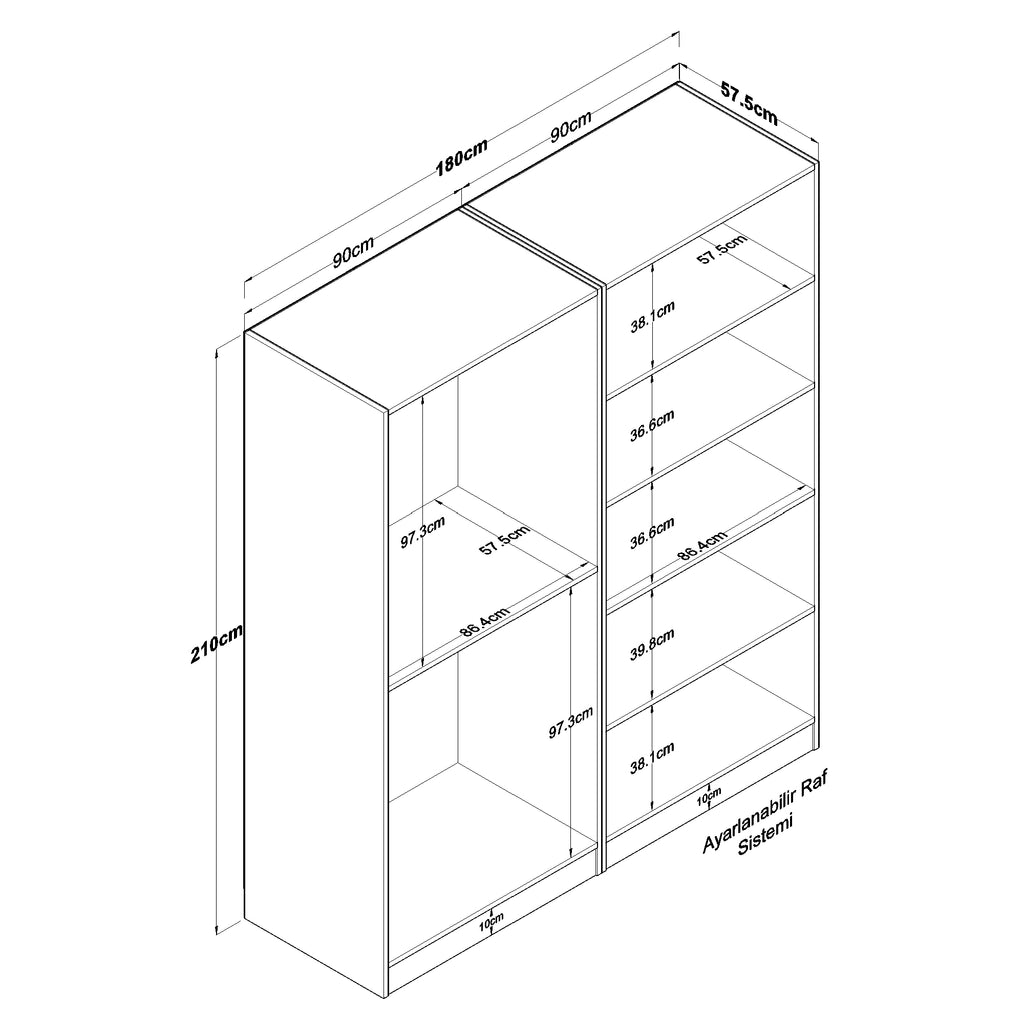 Gardırop: Genişlik: 180 cm - Derinlik: 57,5 cm - Yükseklik: 210 cm