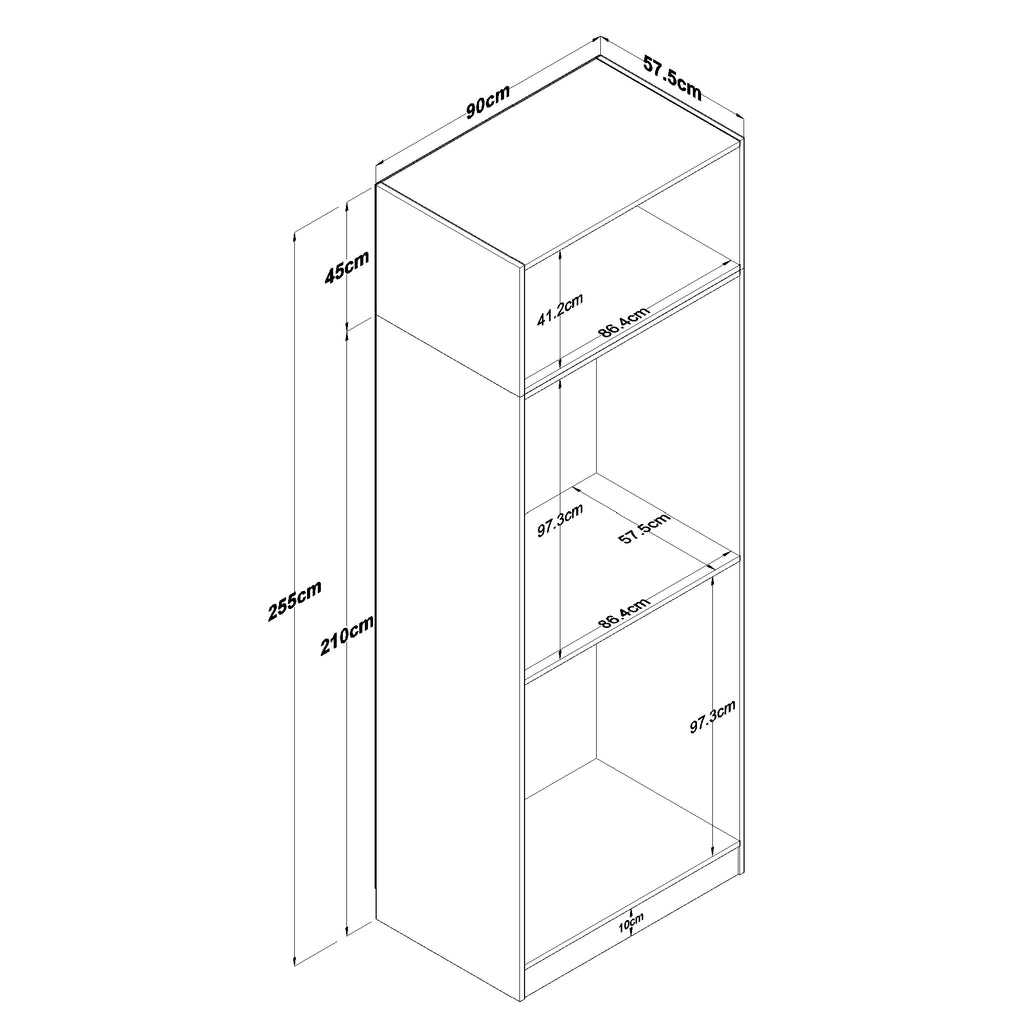 Üst Modül: Genişlik: 90 cm - Derinlik: 57,5 cm - Yükseklik: 45 cm