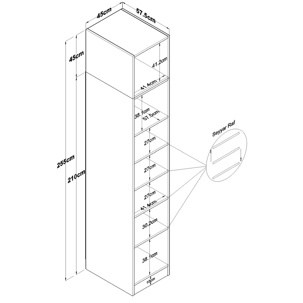 Gardırop: Genişlik: 45cm - Derinlik: 57,50 cm - Yükseklik: 210 cm
