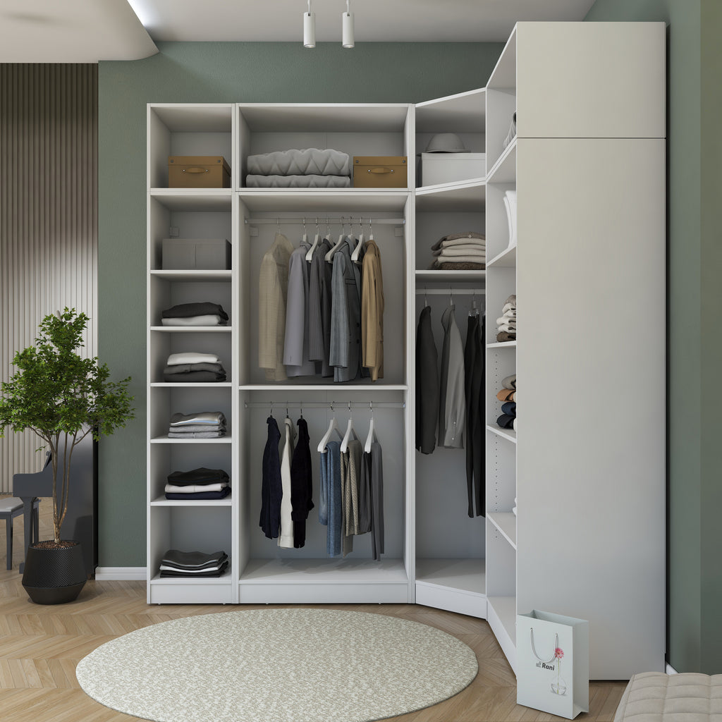 * Köşe Modül Gardırop, modern ve zarif tasarımı ile evinizde köşe alanlarını en verimli şekilde değerlendirmenize yardımcı olur.