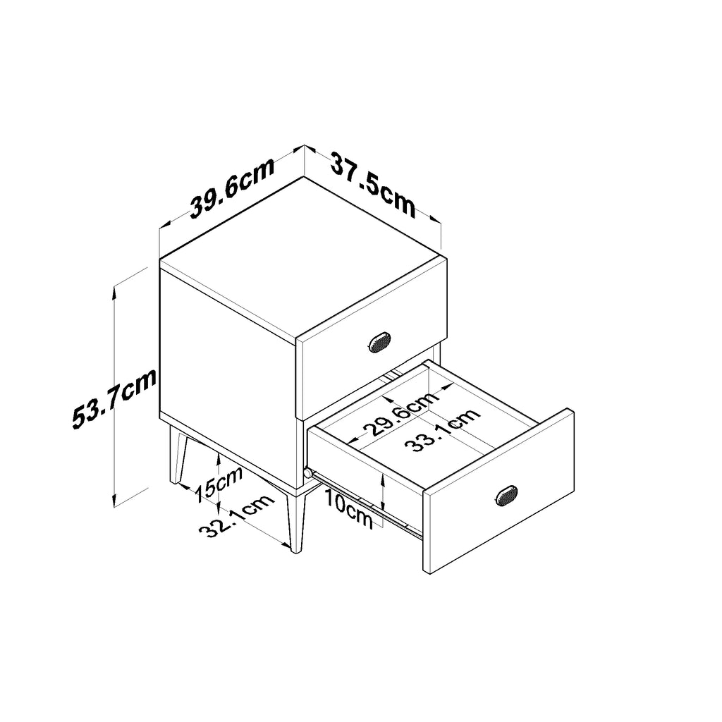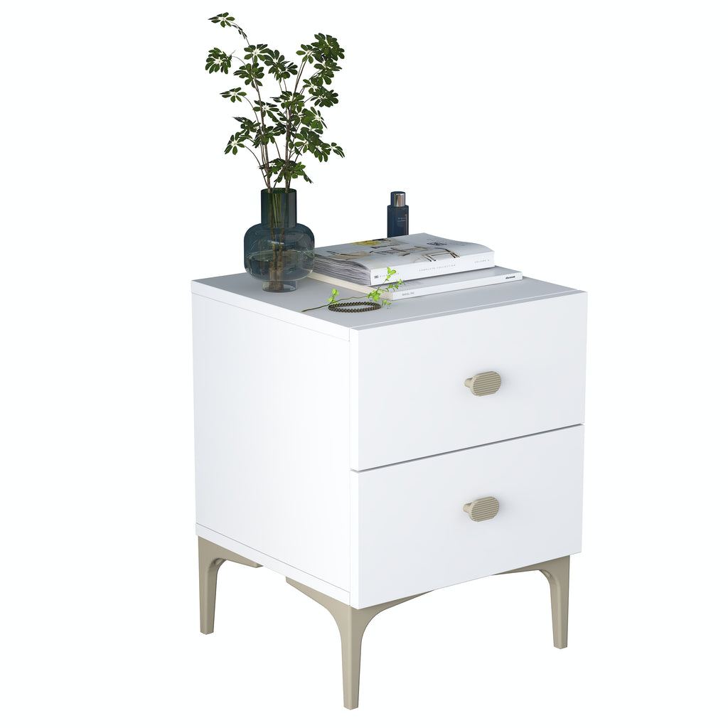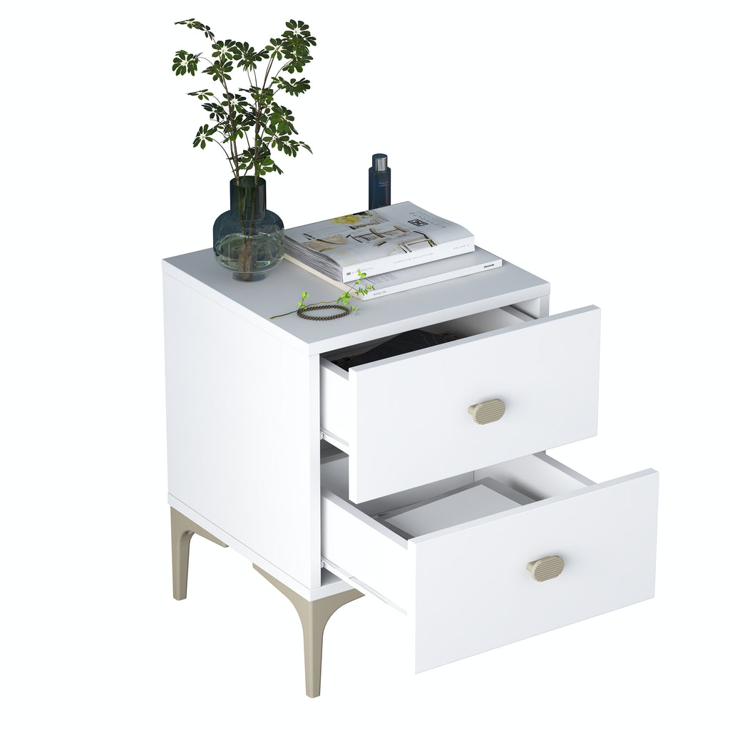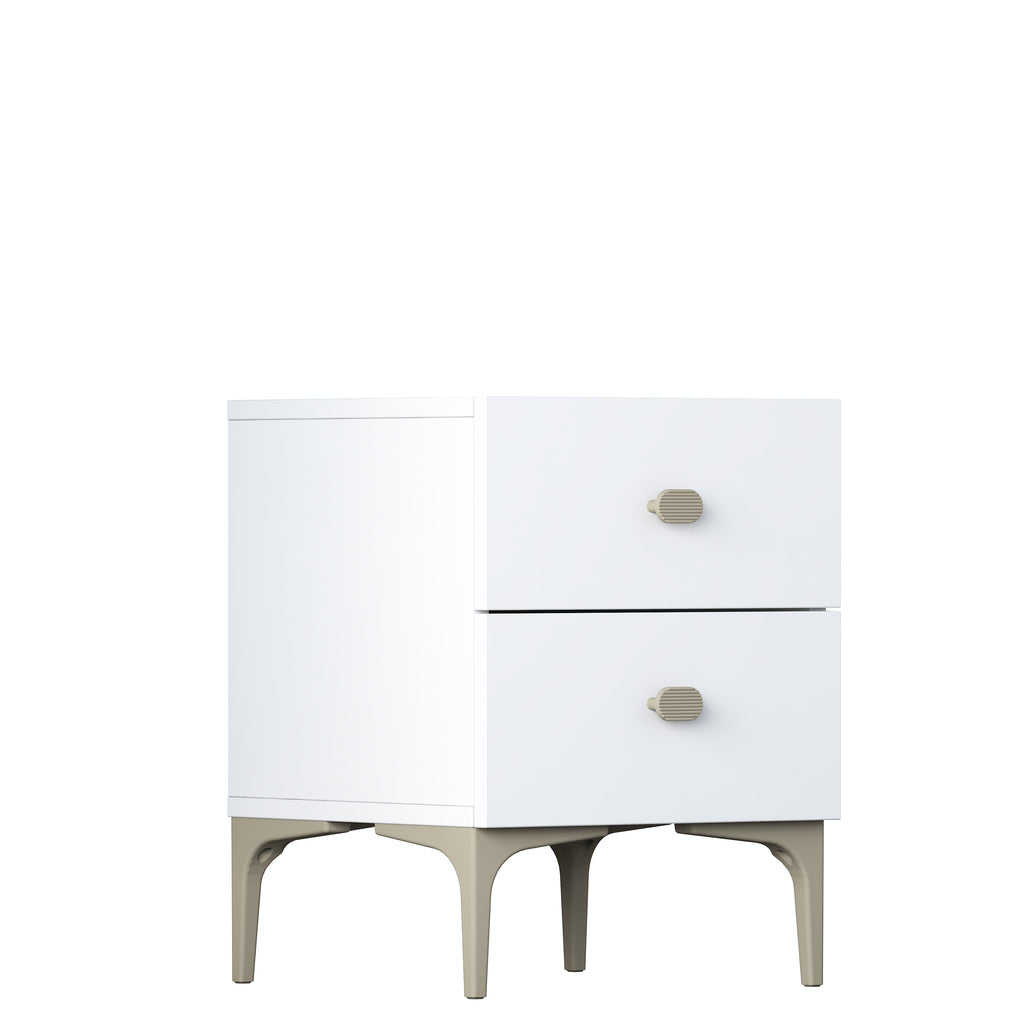 * 2 çekmeceli beyaz komodin, modern tasarımıyla odanıza şıklık ve düzen kazandırır.