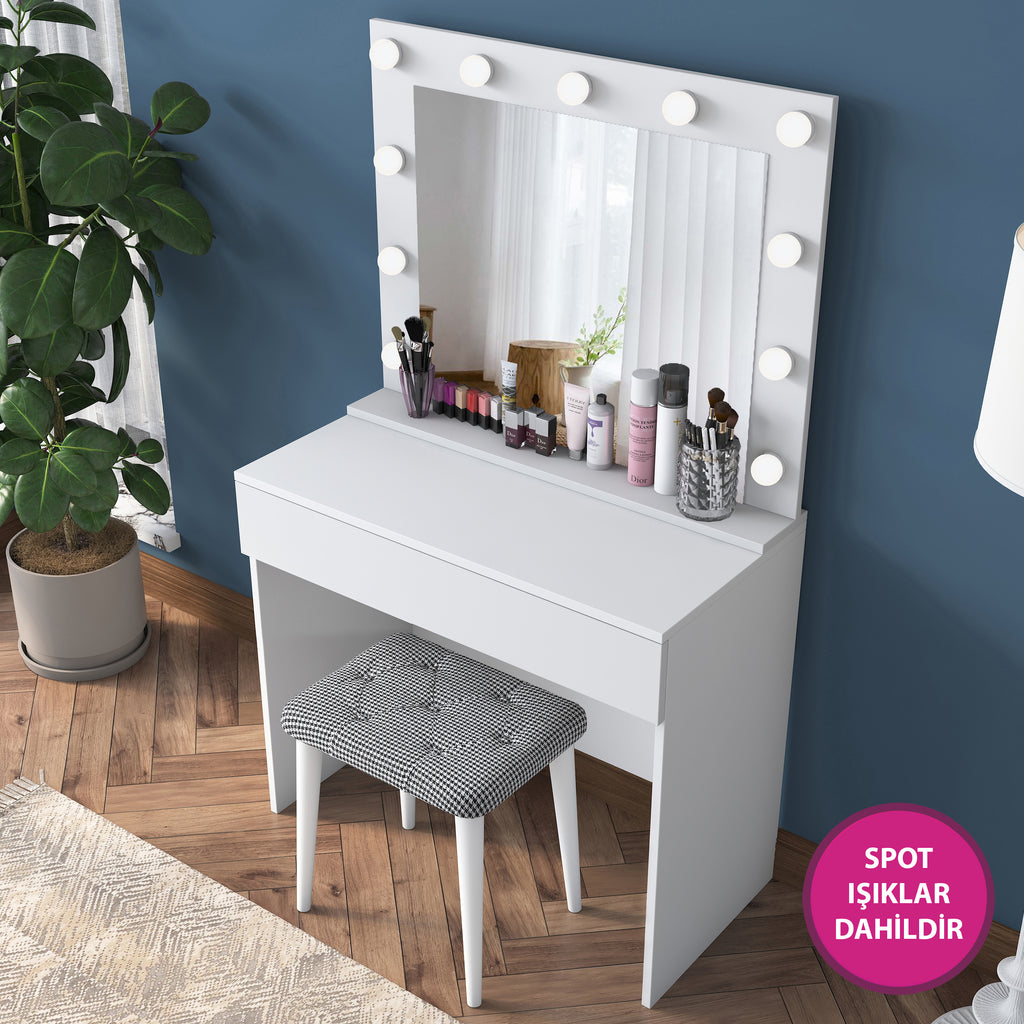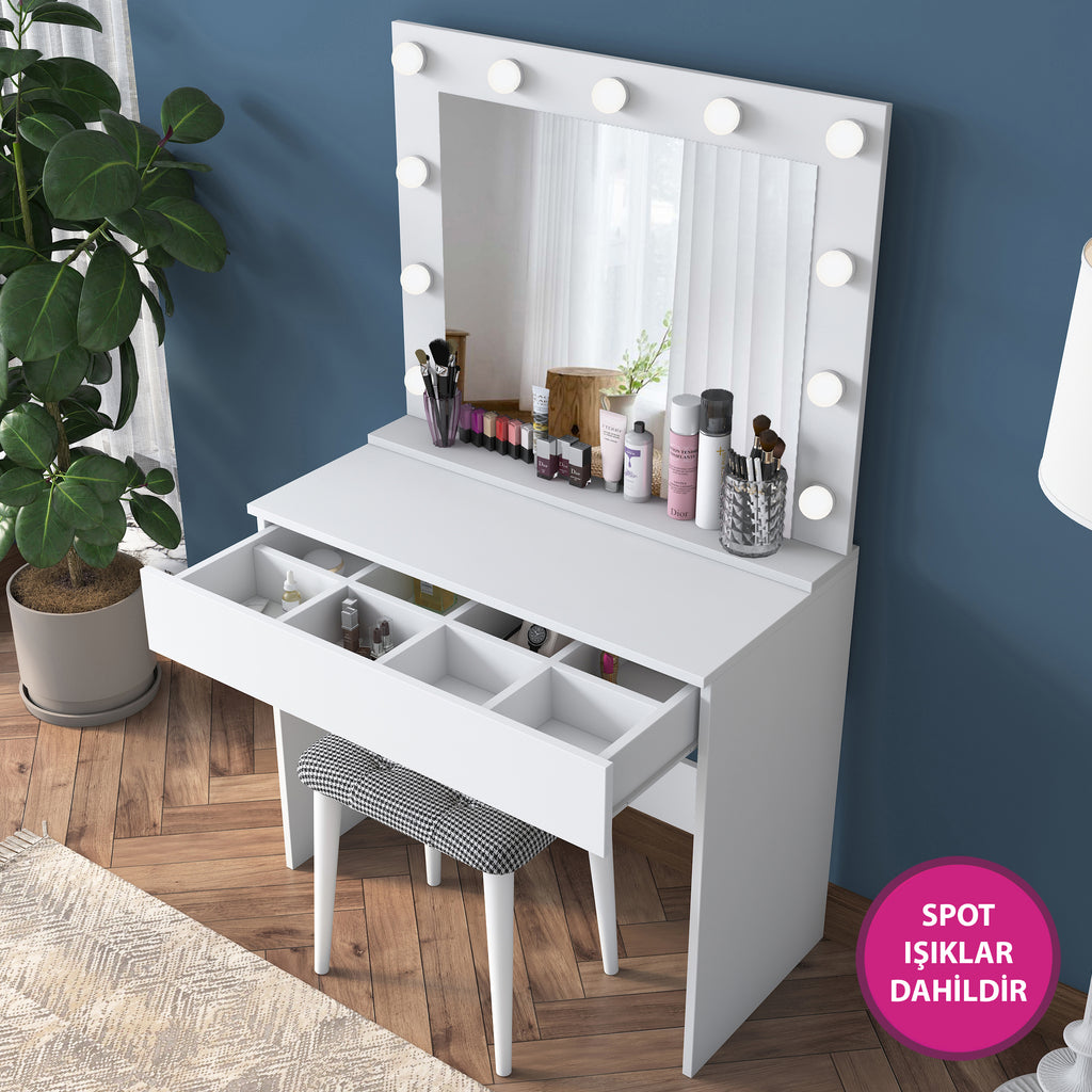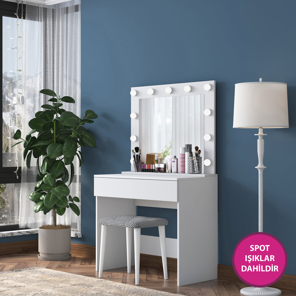 Makyaj Masası: Genişlik: 90 cm - Derinlik: 45 cm - Yükseklik: 76,8 cm