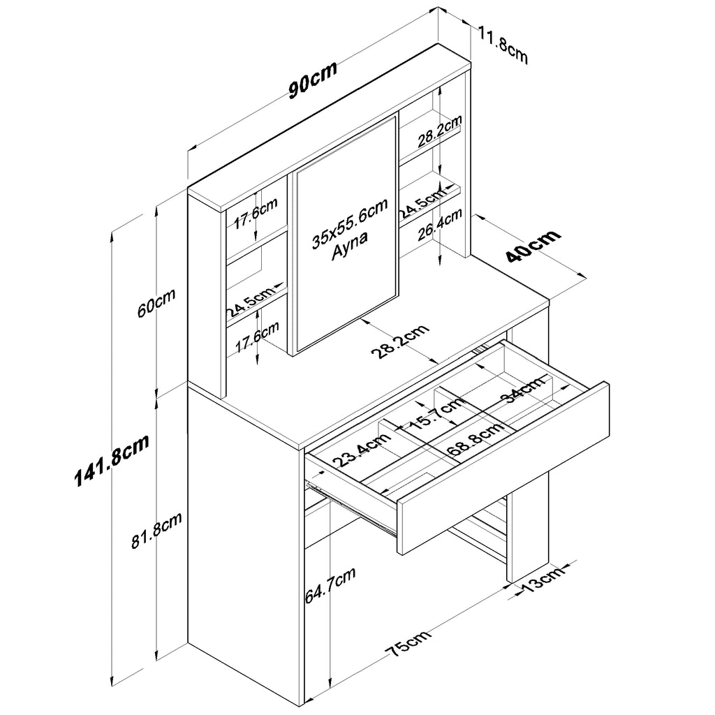 * Bölmeli çekmecesiyle takı, makyaj ve küçük eşyalarınızı düzenli saklayabilirsiniz.