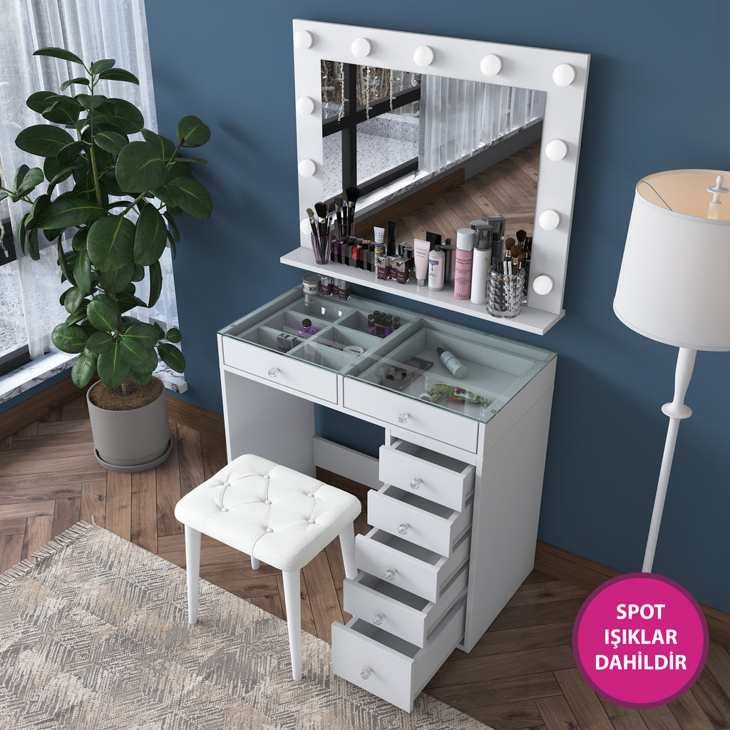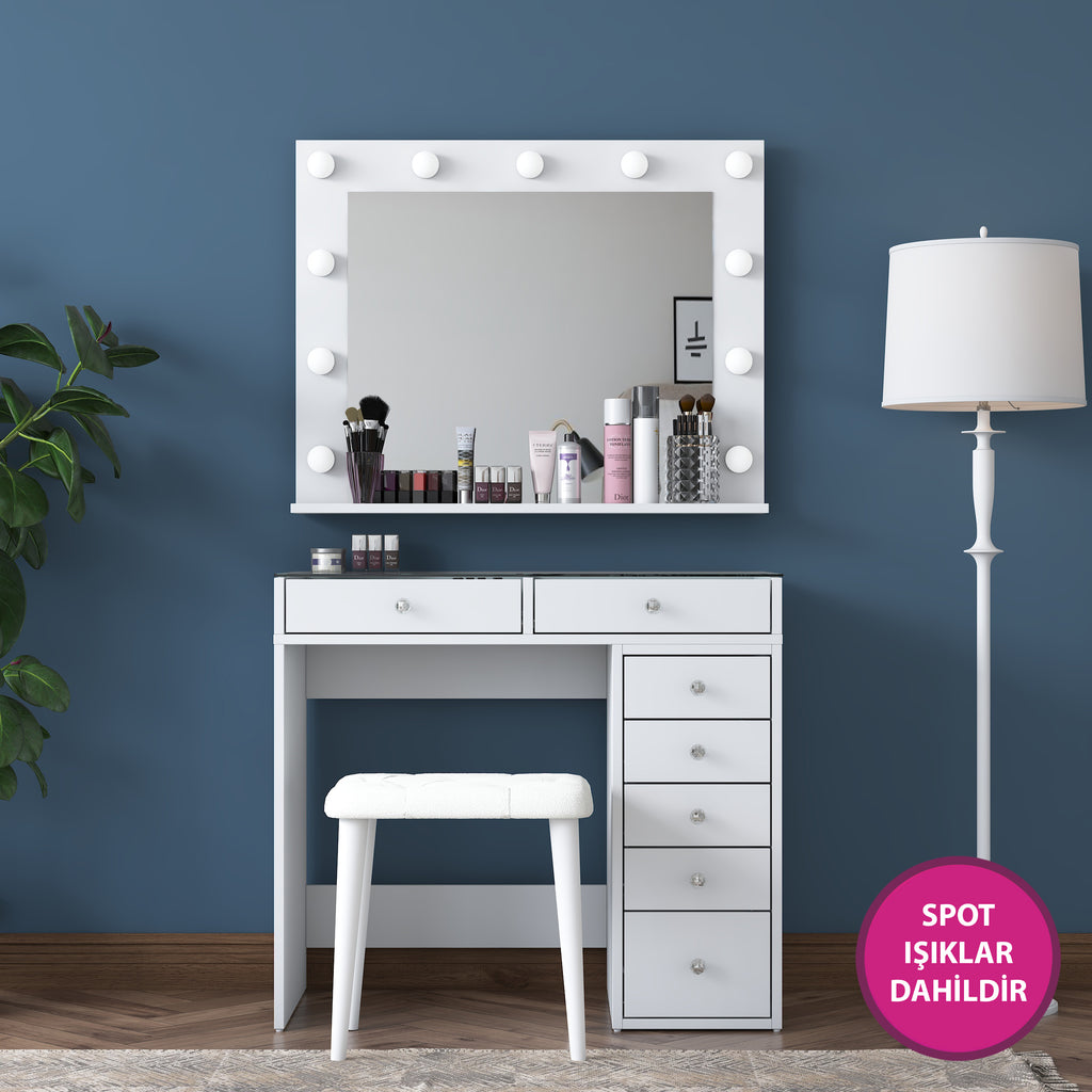 Makyaj Aynası: Genişlik: 90 cm - Derinlik: 15 cm - Yükseklik: 71,8 cm
