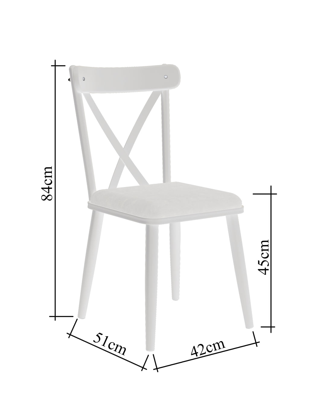 Sandalye: Genişlik: 42 cm - Derinlik: 51 cm - Yükseklik: 84 cm