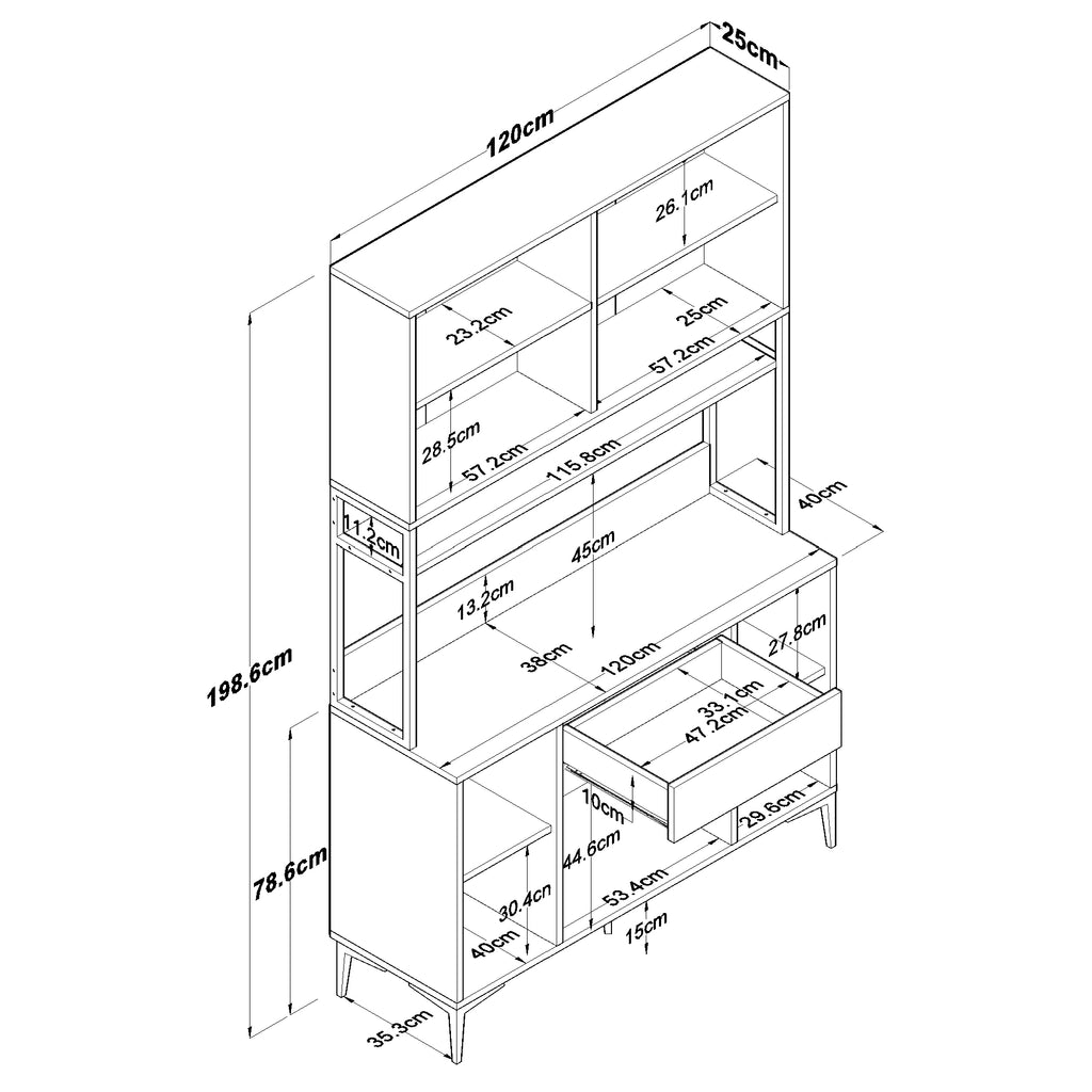 Rani JE127 Çok Amaçlı Dolap 8 Kapaklı 1 Çekmeceli Kiler Mutfak Dolabı Beyaz - Sepet Ceviz
