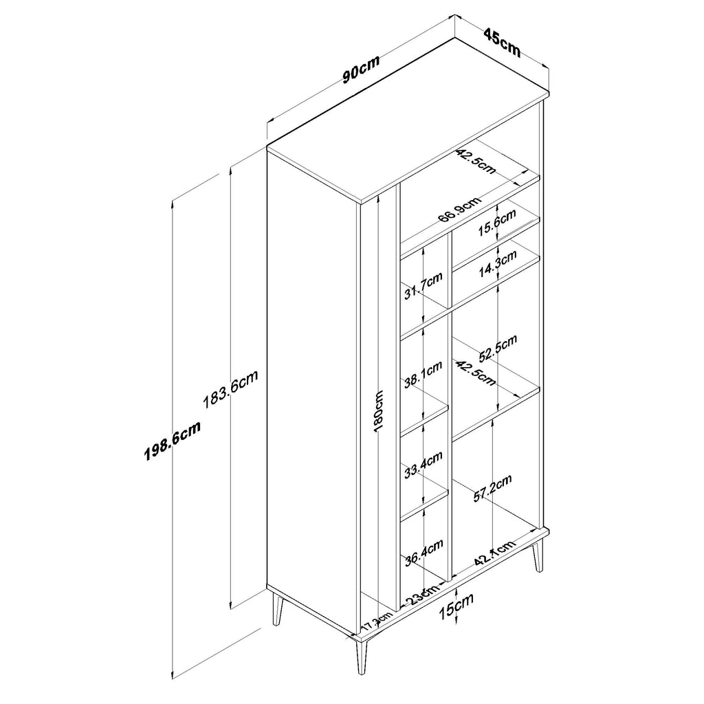 Genişlik: 90 cm - Derinlik: 45 cm - Yükseklik: 198,6 cm