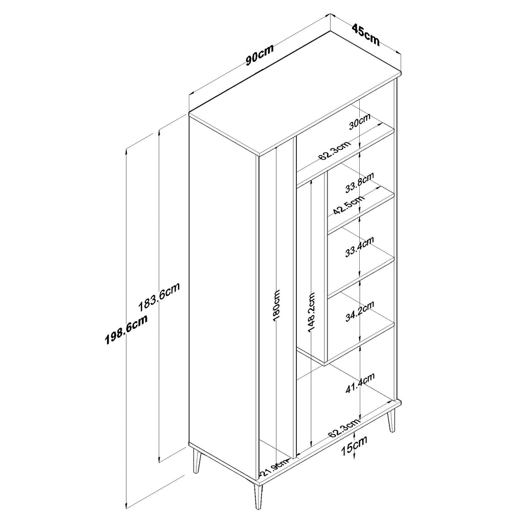 Genişlik: 90 cm - Derinlik: 45 cm - Yükseklik: 198,6 cm
